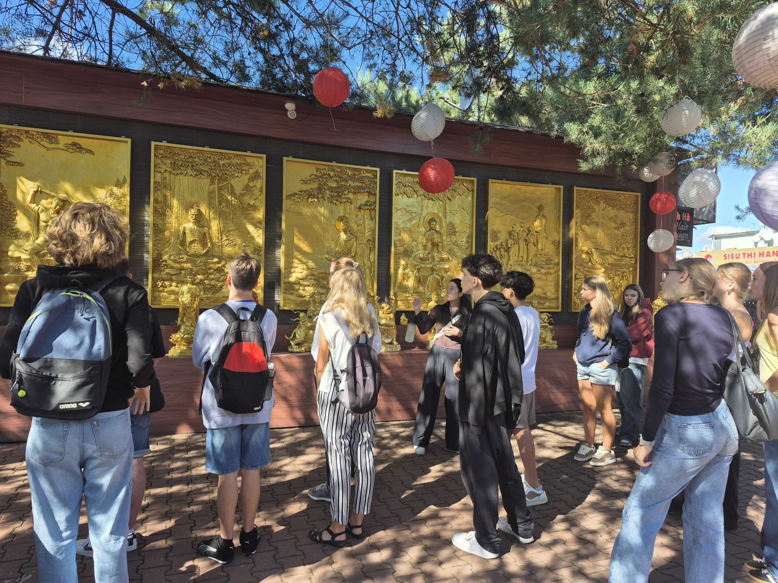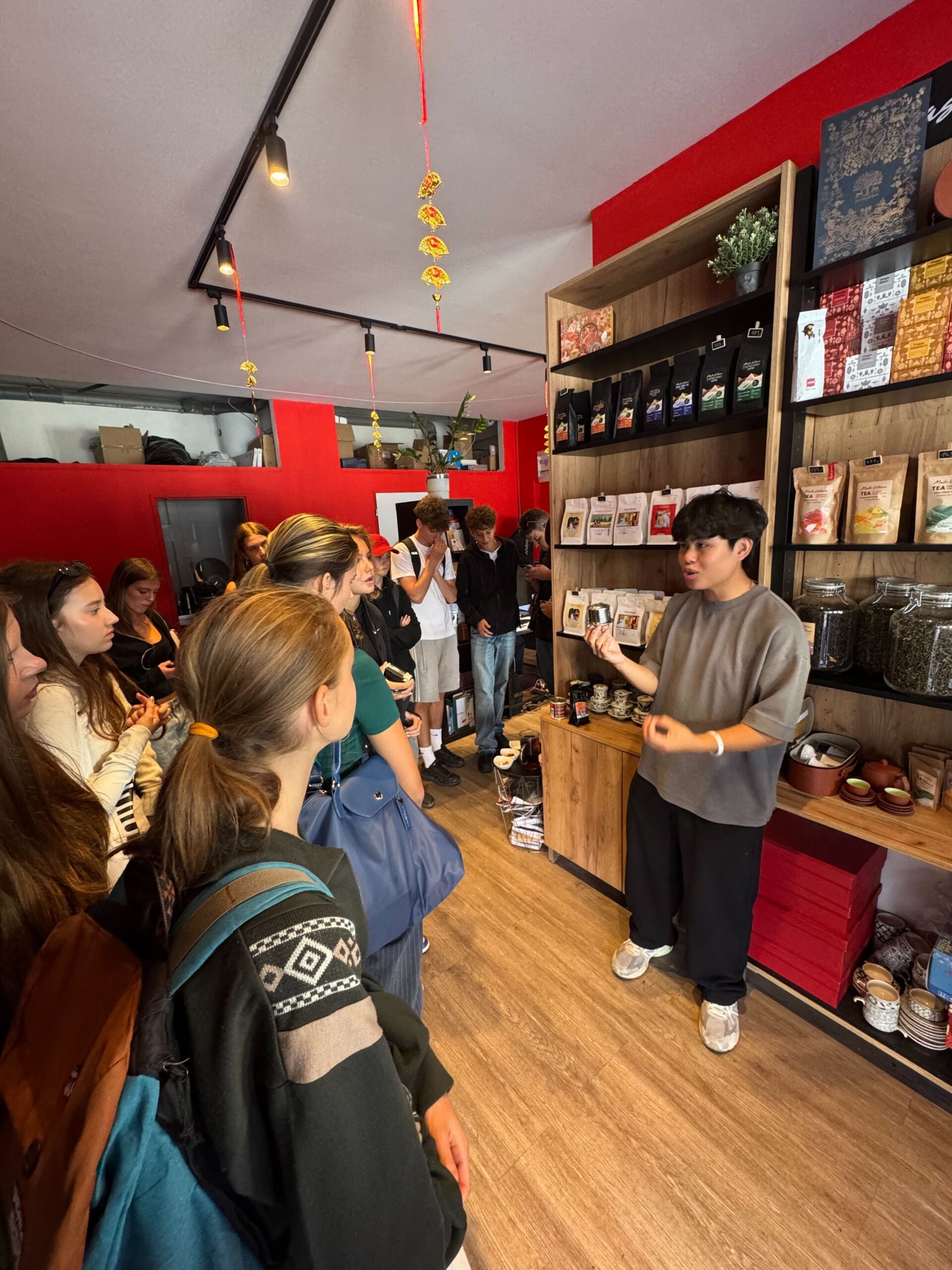 Během prohlídky si žáci prohlédli širokou nabídku obchodů – od čerstvé zeleniny, exotického ovoce až po masné produkty, které nejsou běžně dostupné v českých obchodech. Navštívili také obchod Sapa Tours, kde ochutnali vietnamský čaj, sladkosti a netradiční pokrmy, například hmyz.